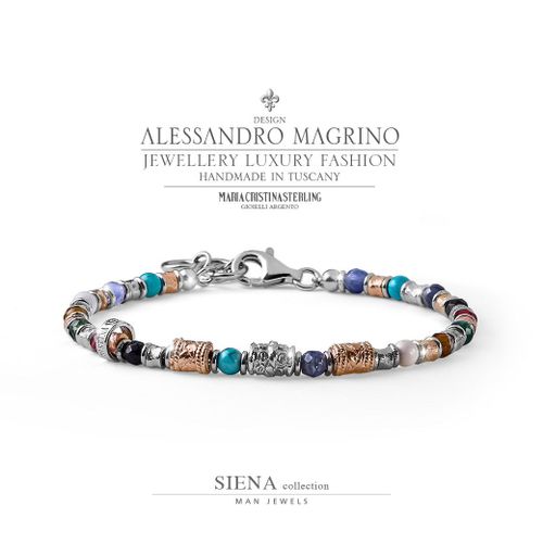 Art. G4021/19 Bracciale Uomo in Argento 925‰ Mix pietre naturali ø 4 mm Chiusura Moschettone Interamente realizzato a mano Made in Italy Disegnato per Mariacristinasterling da Alessandro Magrino