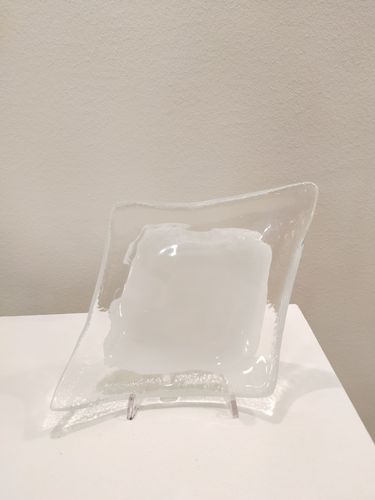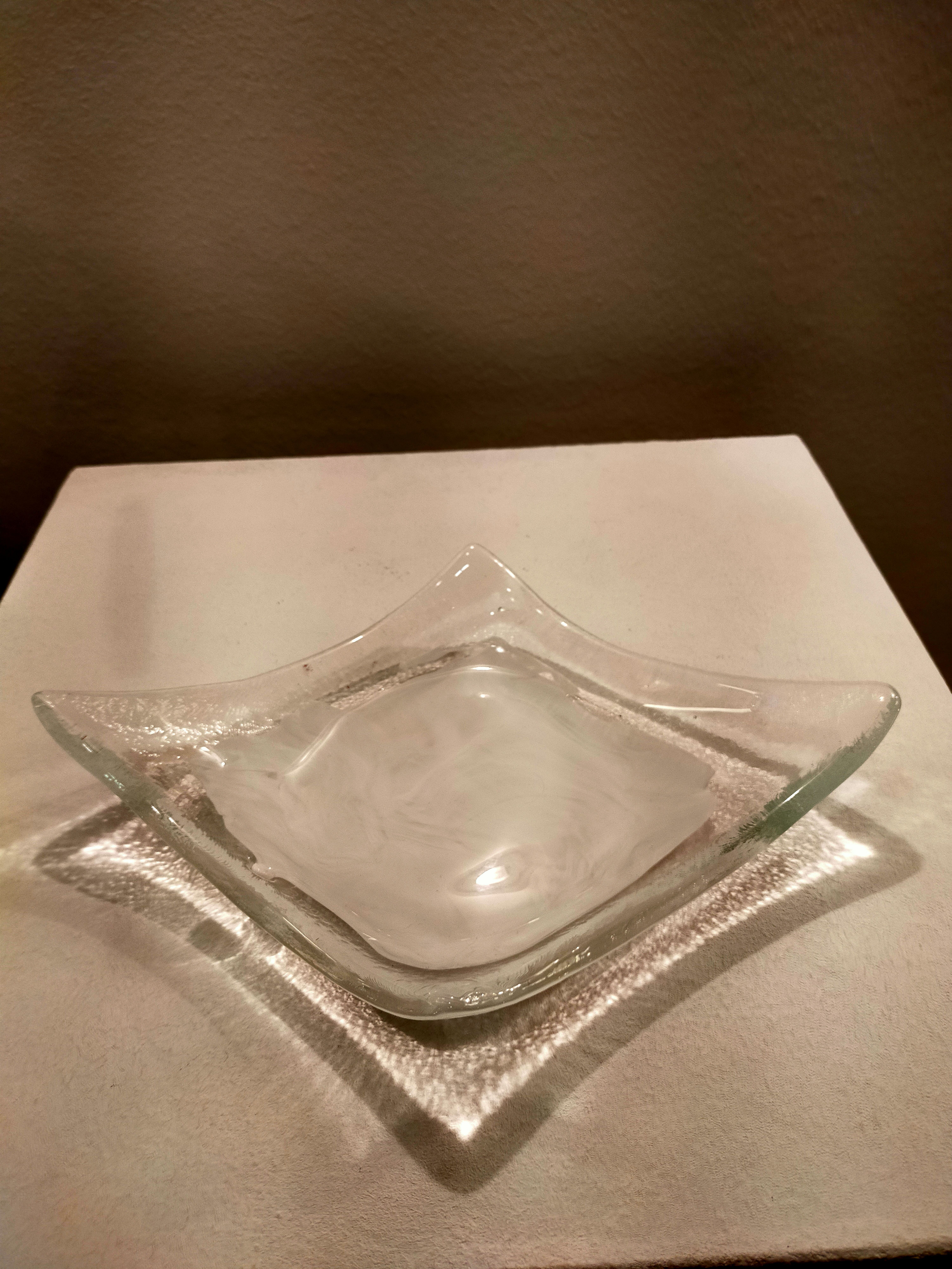 Centrotavola in vetro di Murano soffiato finitura spatolato bianco e cristallo
