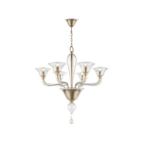 Sospensione Ouverture 6 Luci è realizzata dai vetrai di Murano. Un'estetica molto classica per arredare il tuo ambiente stile antico o anche per ornare hall di alberghi di lusso.