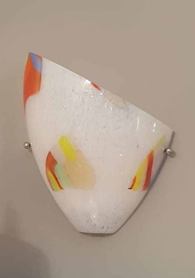 mod. Perla/A applique in vetro bianco con murrine, montatura nickel satinato
